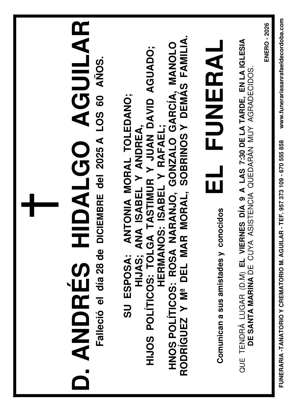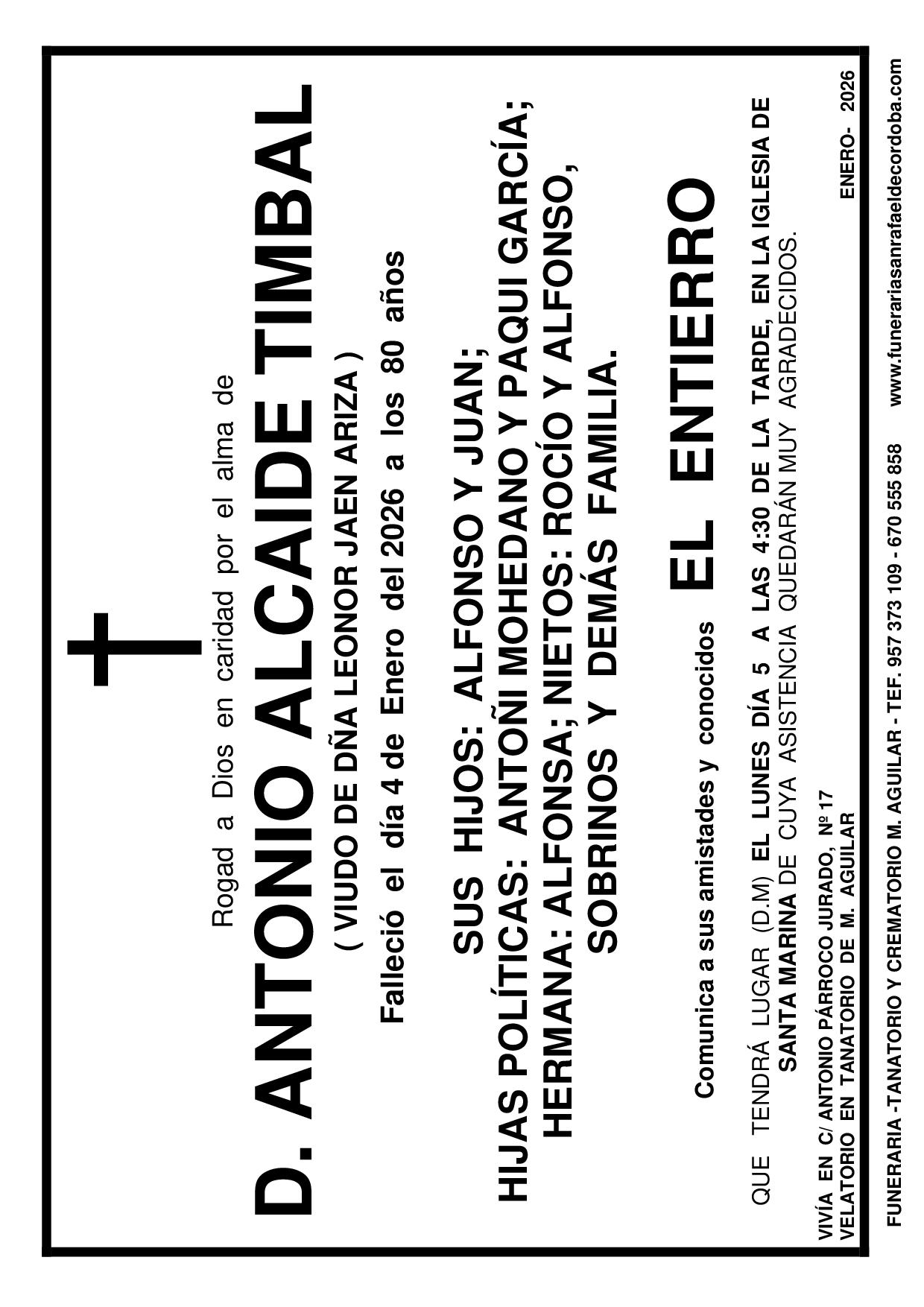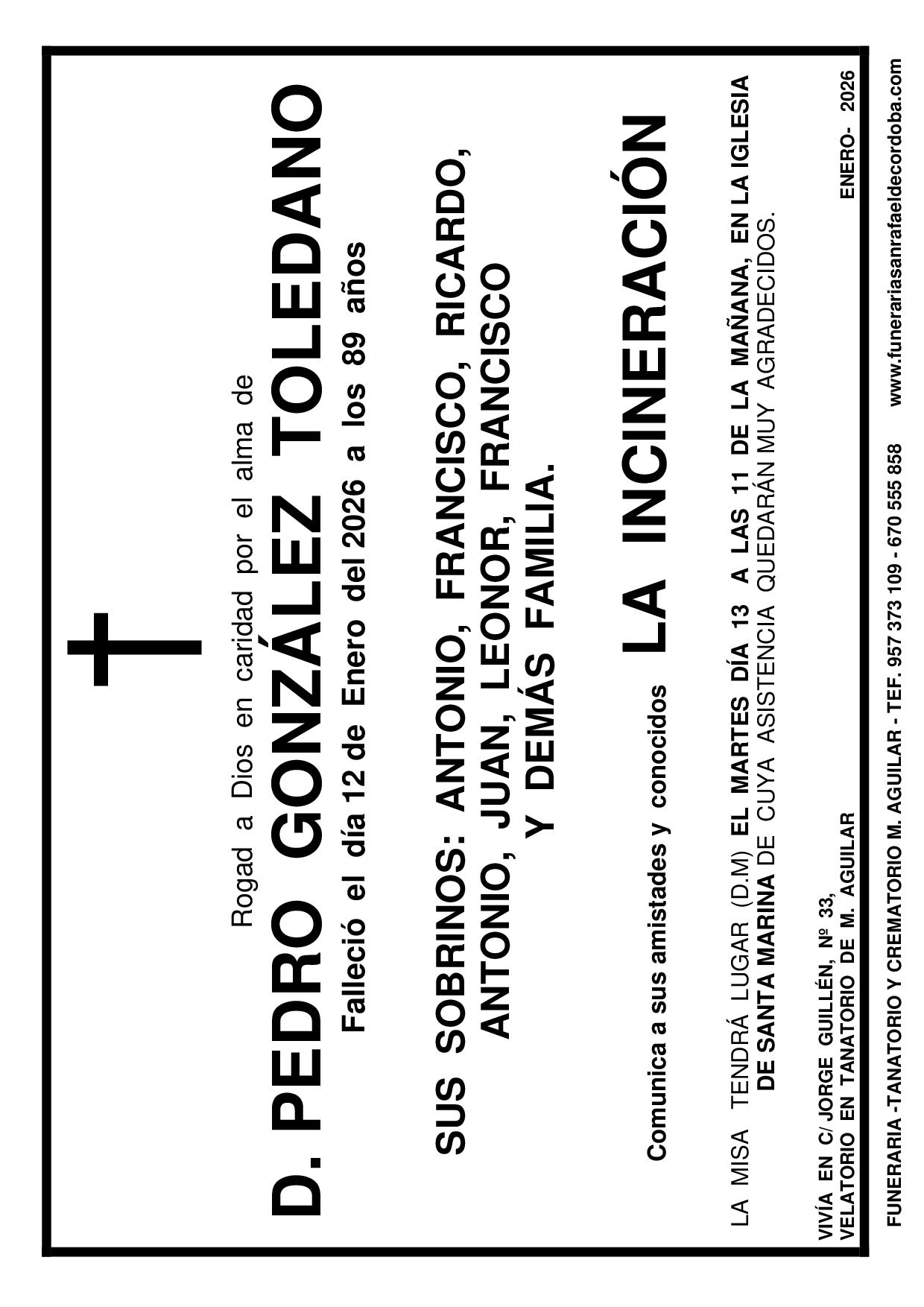 En Funeraria San Rafael de Córdoba nos encargamos de todo: Impresión, reparto, anuncio en periódico. MARÍA BARAJAS MOHEDANO JOSÉ SÁNCHEZ ZAMORA PEDRO GONZÁLEZ TOLEDANO FUNERAL ANDRÉS HIDALGO AGUILAR ANTONIO ALCAIDE TIMBAL ANA AREVALO RECIO ANDRÉS HIDALGO AGUILAR anterior 1 2 3 … 153 próximo
