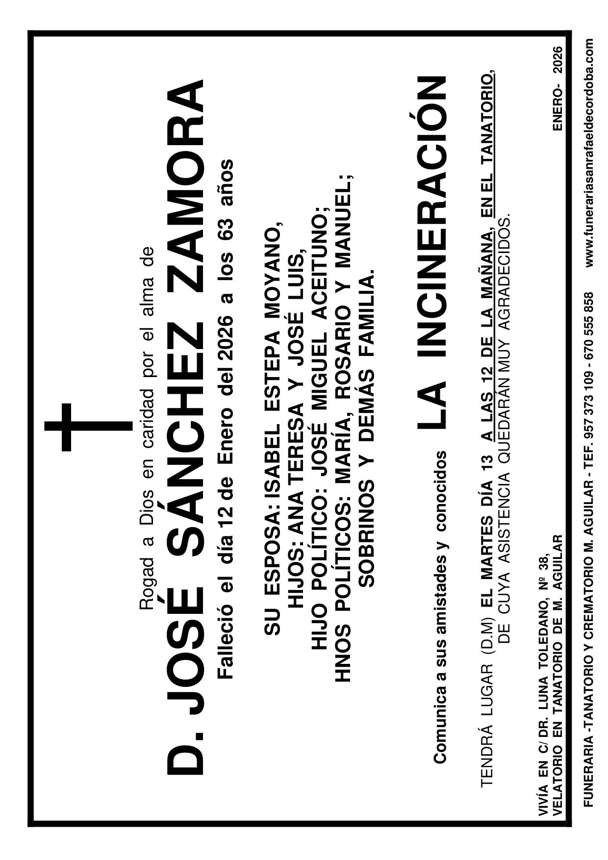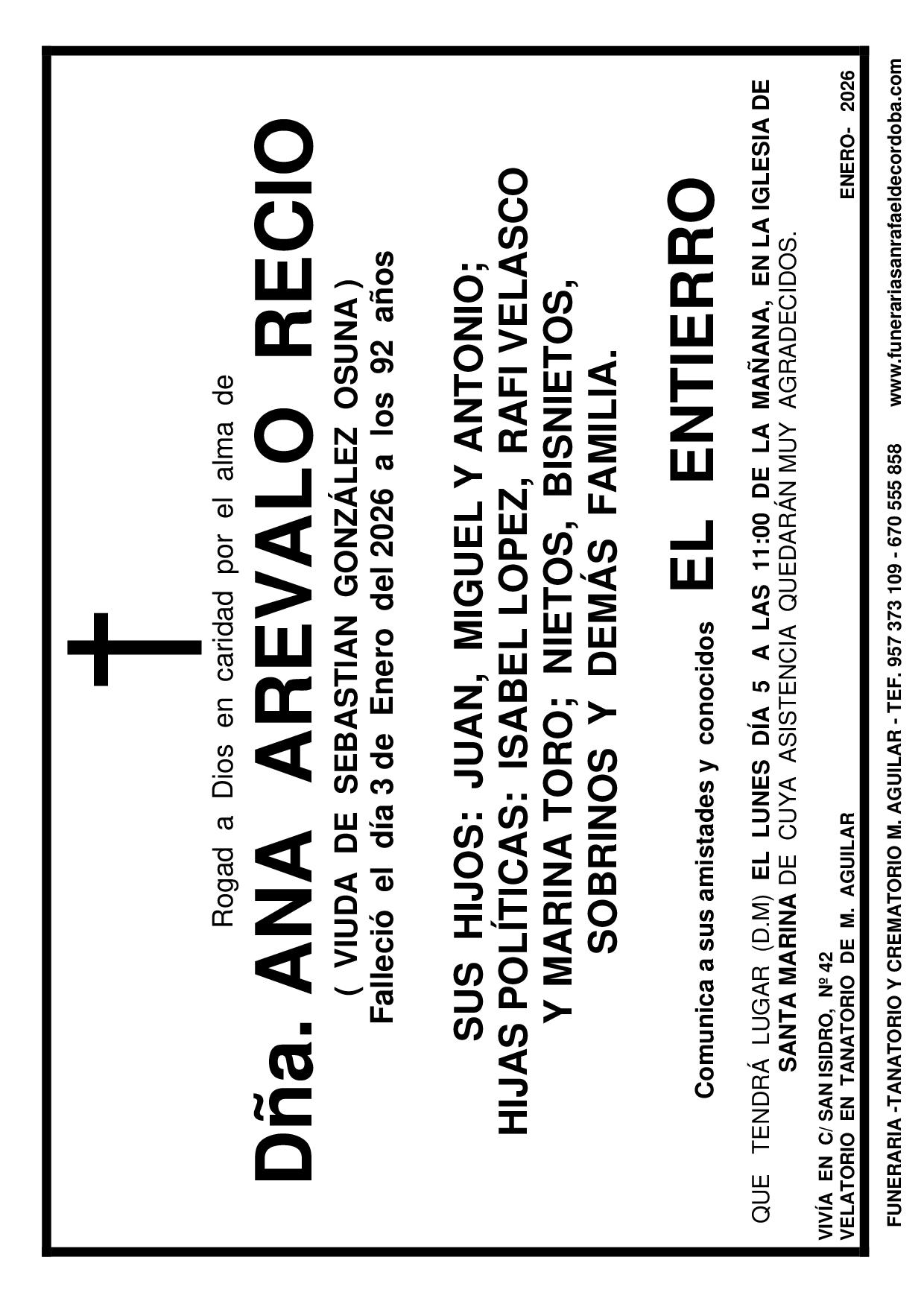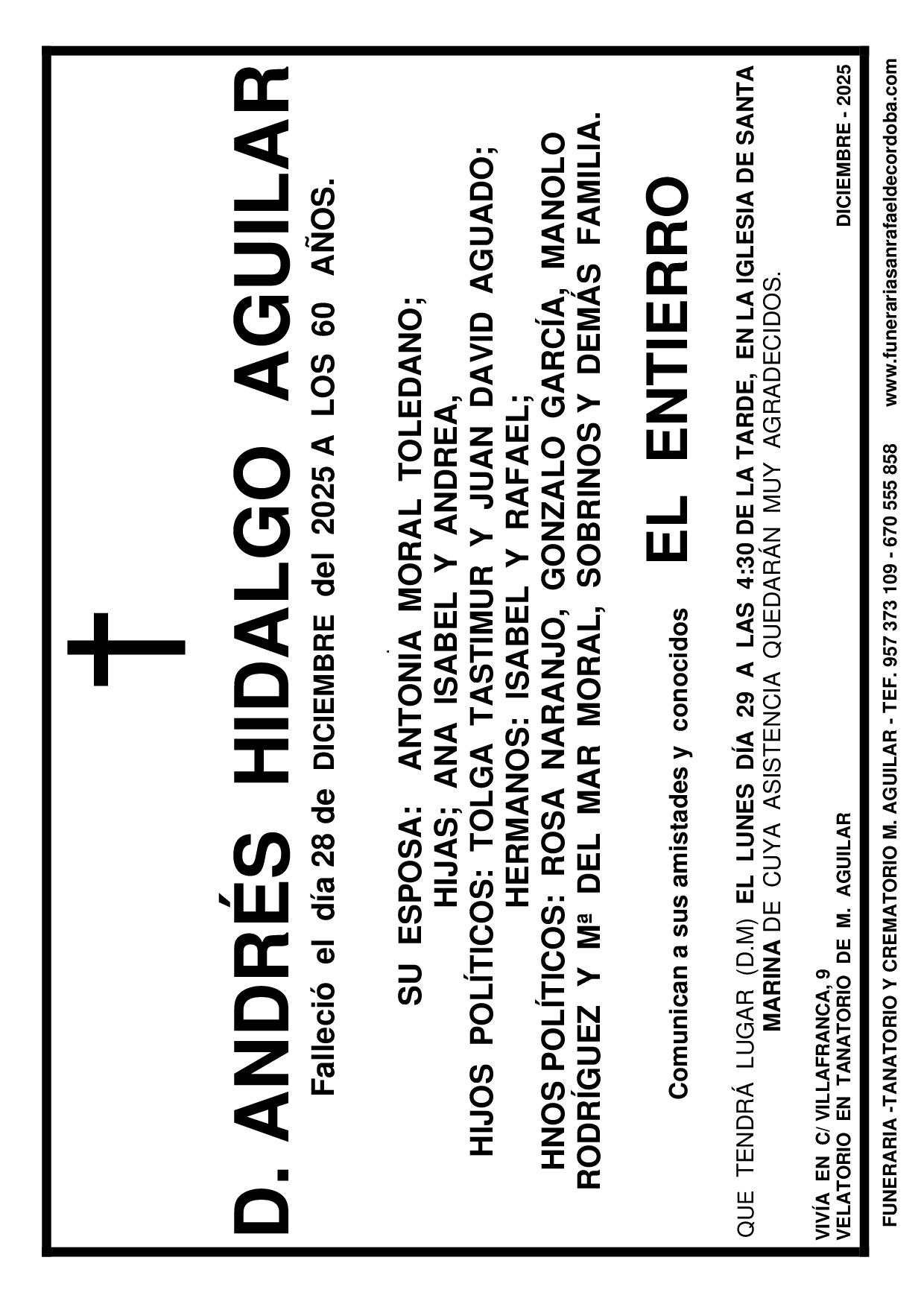 En Funeraria San Rafael de Córdoba nos encargamos de todo: Impresión, reparto, anuncio en periódico. MARÍA BARAJAS MOHEDANO JOSÉ SÁNCHEZ ZAMORA PEDRO GONZÁLEZ TOLEDANO FUNERAL ANDRÉS HIDALGO AGUILAR ANTONIO ALCAIDE TIMBAL ANA AREVALO RECIO ANDRÉS HIDALGO AGUILAR anterior 1 2 3 … 153 próximo