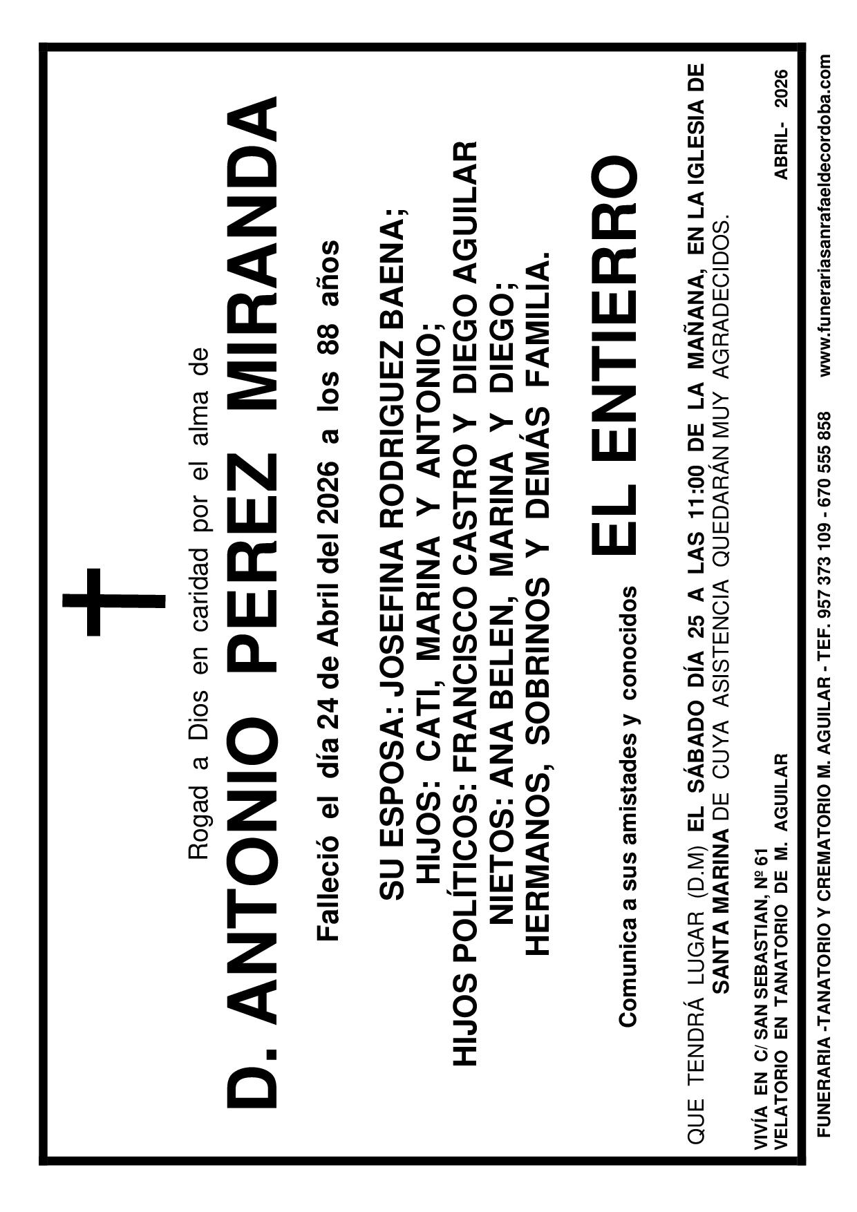 En Funeraria San Rafael de Córdoba nos encargamos de todo: Impresión, reparto, anuncio en periódico. FUNERAL FRANCISCO TOLEDANO SOJO FRANCISCO TOLEDANO SOJO JOSÉ PEREZ PERAL ANGEL GALLEGO ARIZA ANA JAÉN BAENA MISA 1º ANIVERSARIO FRANCISCO GARCÍA GALLARDO FUNERAL ESPERANZA MIRANDA FERNÁNDEZ anterior 1 2 3 … 158 próximo