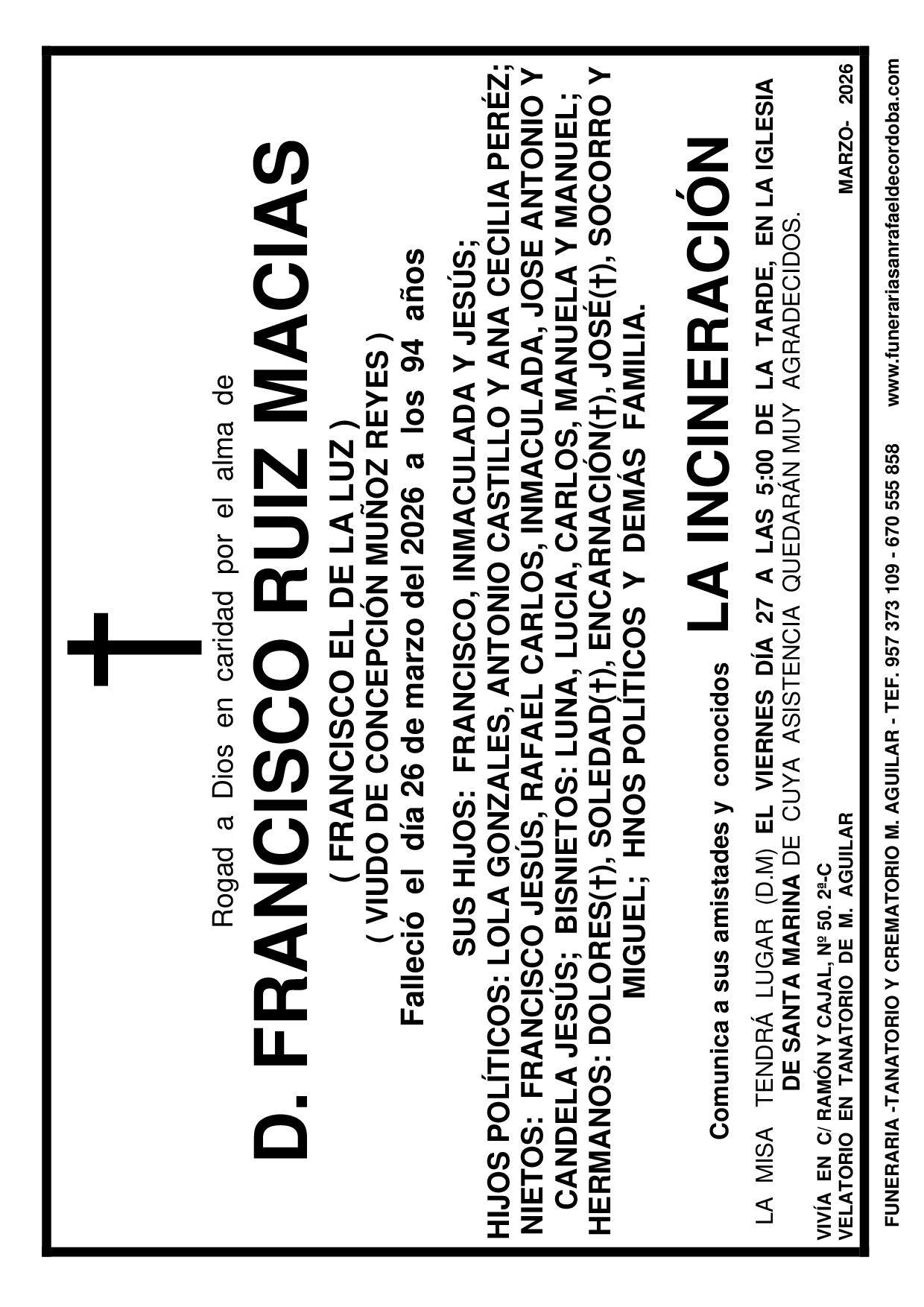 En Funeraria San Rafael de Córdoba nos encargamos de todo: Impresión, reparto, anuncio en periódico. FRANCISCO RUIZ MACIAS ANA DE TORO ARIZA FUNERAL FRANCISCO SERRANO RODRÍGUEZ JUAN FERNANDEZ ZAMORANO ROSARIO ROMERO SECADA ROSARIO RUIZ MEDINA JOSÉ MARTÍN LÓPEZ anterior 1 2 3 … 157 próximo