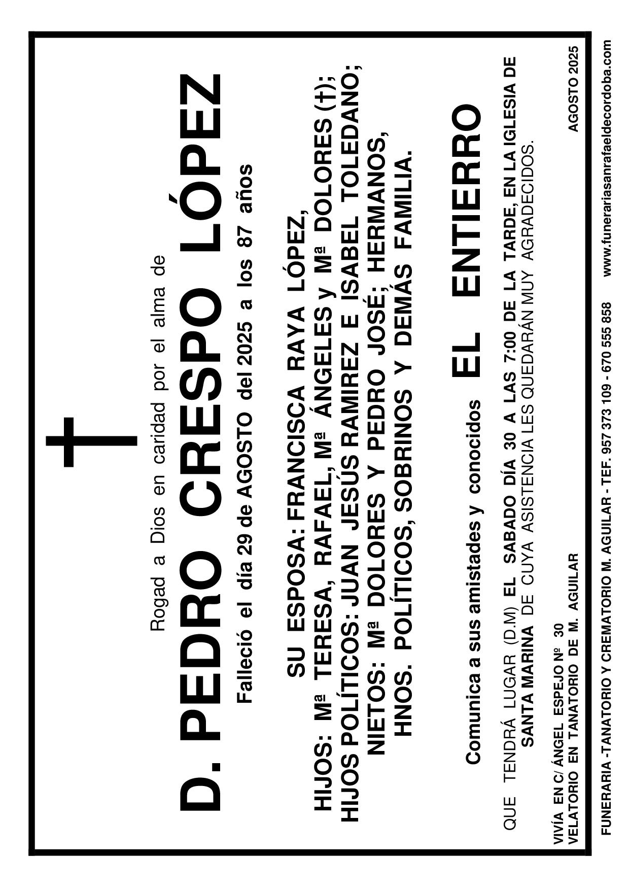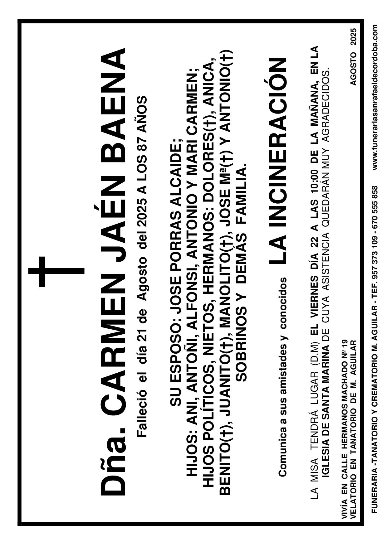 En Funeraria San Rafael de Córdoba nos encargamos de todo: Impresión, reparto, anuncio en periódico. ISABEL JIMENEZ GUERRA VICENTE PÈREZ RUIZ PEDRO CRESPO LÓPEZ JUANA PULIDO JARA ISABEL GARCÍA CAÑERO CARMEN JAÉN BAENA FRANCISCO HOYO ANGEL anterior 1 2 3 4 5 6 … 151 próximo