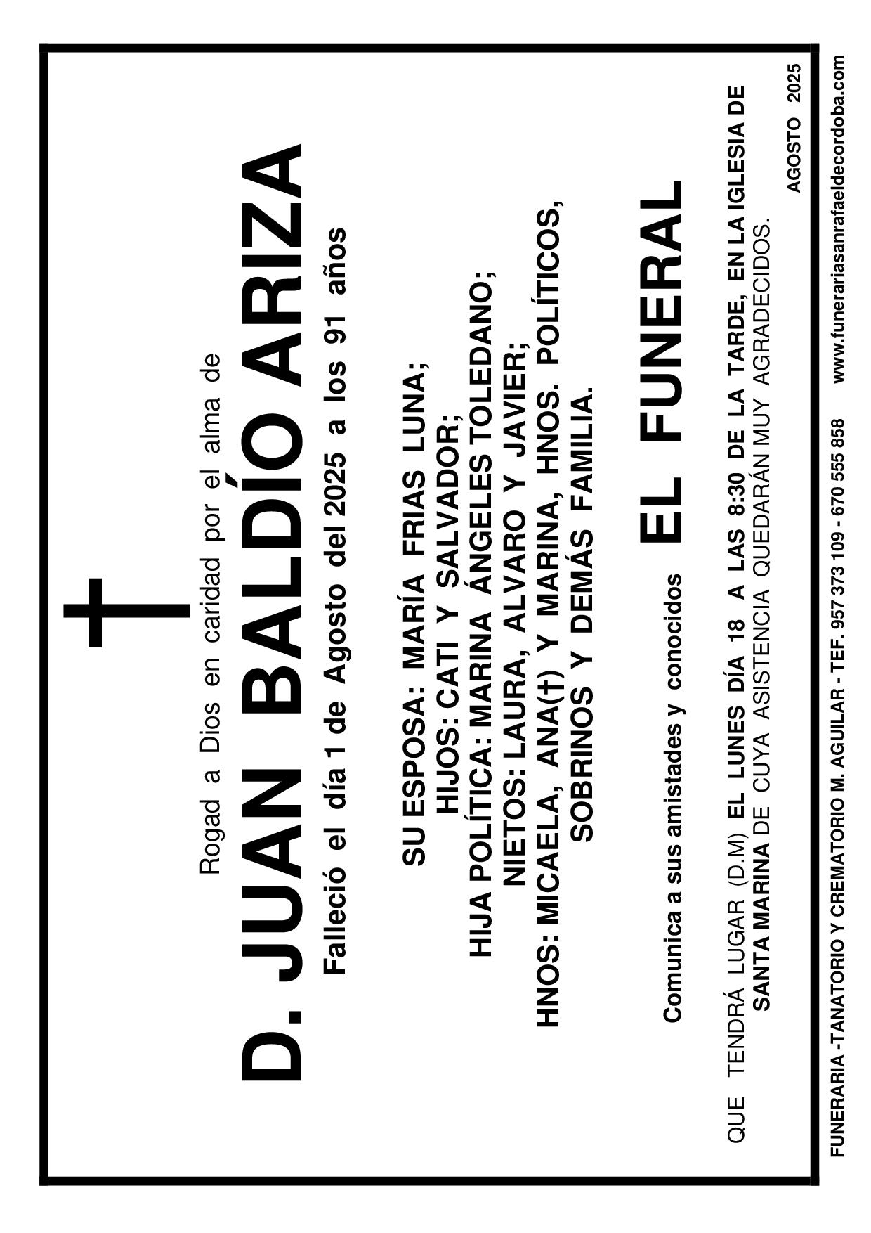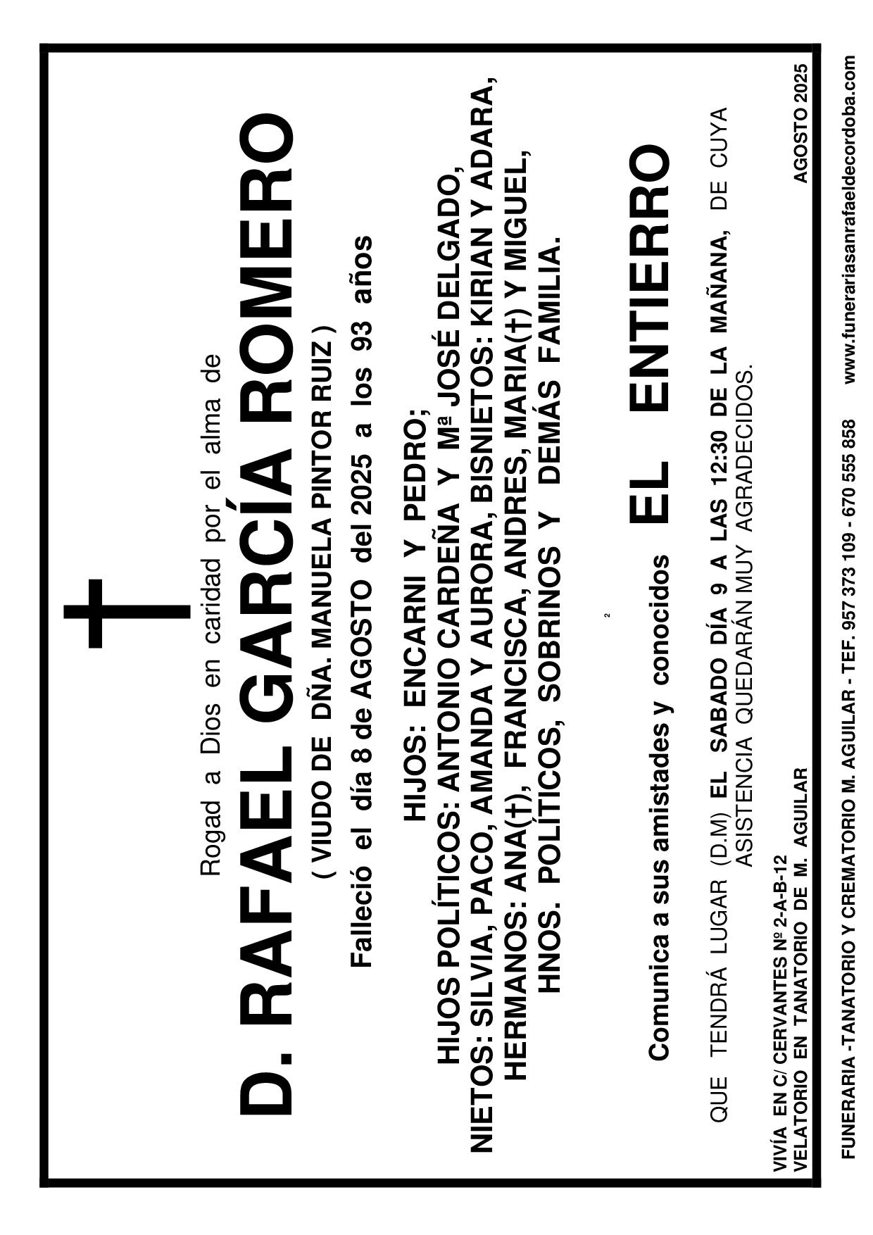En Funeraria San Rafael de Córdoba nos encargamos de todo: Impresión, reparto, anuncio en periódico. FUNERAL JUAN BALDÍO ARIZA RAFAEL GARCÍA ROMERO CÁNDIDA SÁNCHEZ NARANJO MISA 1º ANIVERSARIO FRANCISCO JURADO ARIZA JUANA JIMÉNEZ MORAL JUAN BALDÍO ARIZA FUNERAL ANA SERRANO SERRANO anterior 1 … 3 4 5 6 7 … 151 próximo