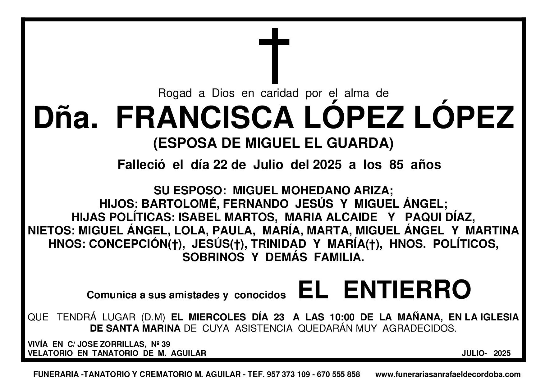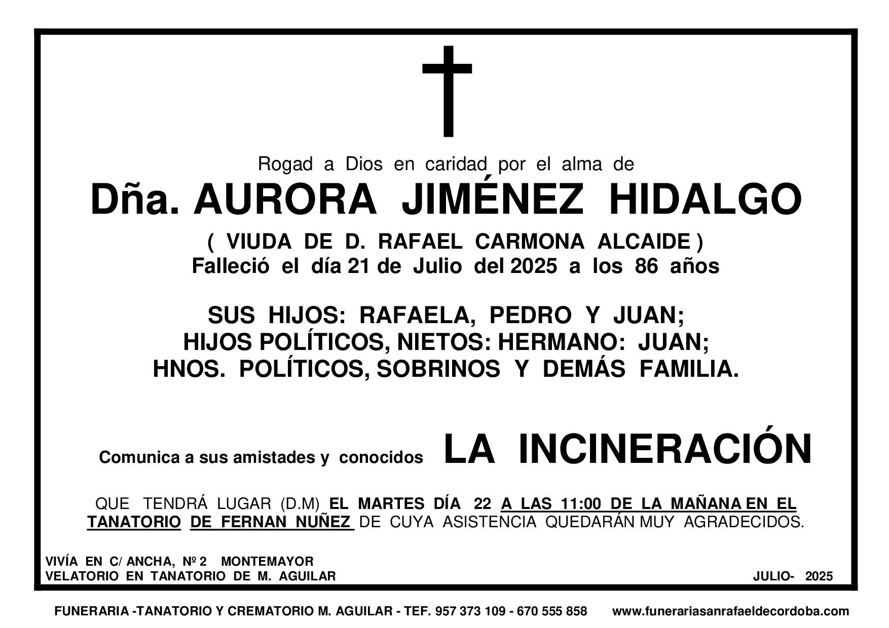 En Funeraria San Rafael de Córdoba nos encargamos de todo: Impresión, reparto, anuncio en periódico. FUNERAL PEDRO JAÉN LÓPEZ FRANCISCA NIETO ARIZA ANA AGUILAR JURADO FRANCISCA LÓPEZ LÓPEZ ANA SERRANO SERRANO AURORA JIMÉNEZ HIDALGO PEDRO JAÉN LÓPEZ anterior 1 … 4 5 6 7 8 … 151 próximo
